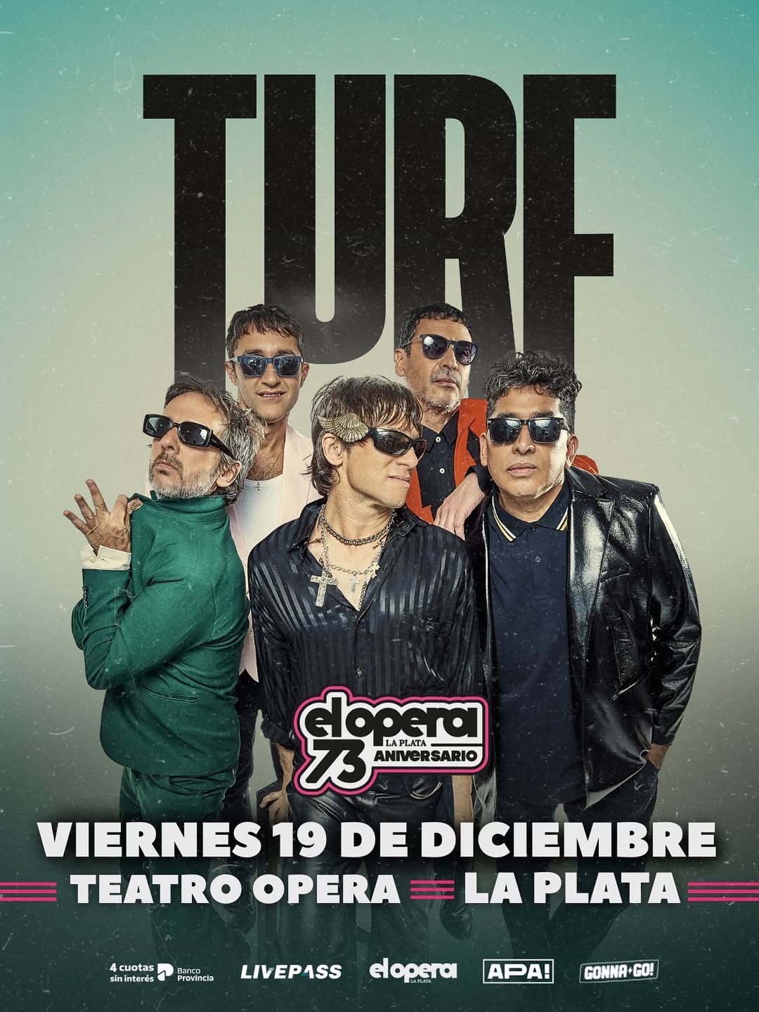 Turf continúa su recorrido por Argentina con una serie de shows inolvidables. Entre los próximos conciertos se destacan presentaciones en La Feliz Fest en Mar del Plata el 18 de octubre, el Festival del Pejerrey en El Carmen, Jujuy el 8 de noviembre, y el Festival Polenta en Ciudad de Buenos Aires el 29 de noviembre. La banda también llegará a la Fiesta Nacional de la Leche en Totoras, Santa Fe el 6 de diciembre, antes de cerrar el año con un show muy especial en el Teatro Opera de La Plata el 19 de diciembre. |