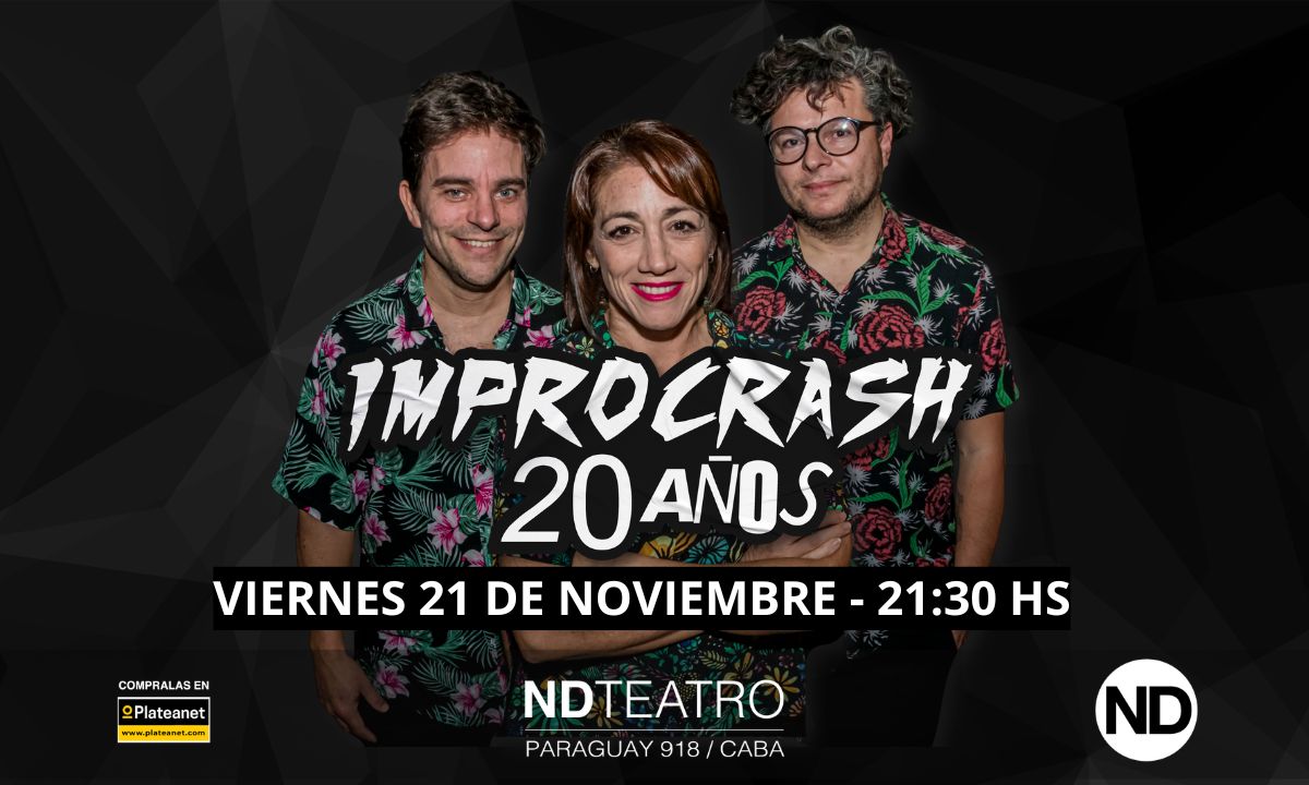 IMPROCRASH, uno de los grupos pioneros de la improvisación teatral en Argentina, celebrará sus dos décadas de carrera con una función especial e imperdible el viernes 21 de noviembre de 2025, a las 21:30 h, en el prestigioso Teatro ND Ateneo (Paraguay 918, CABA).