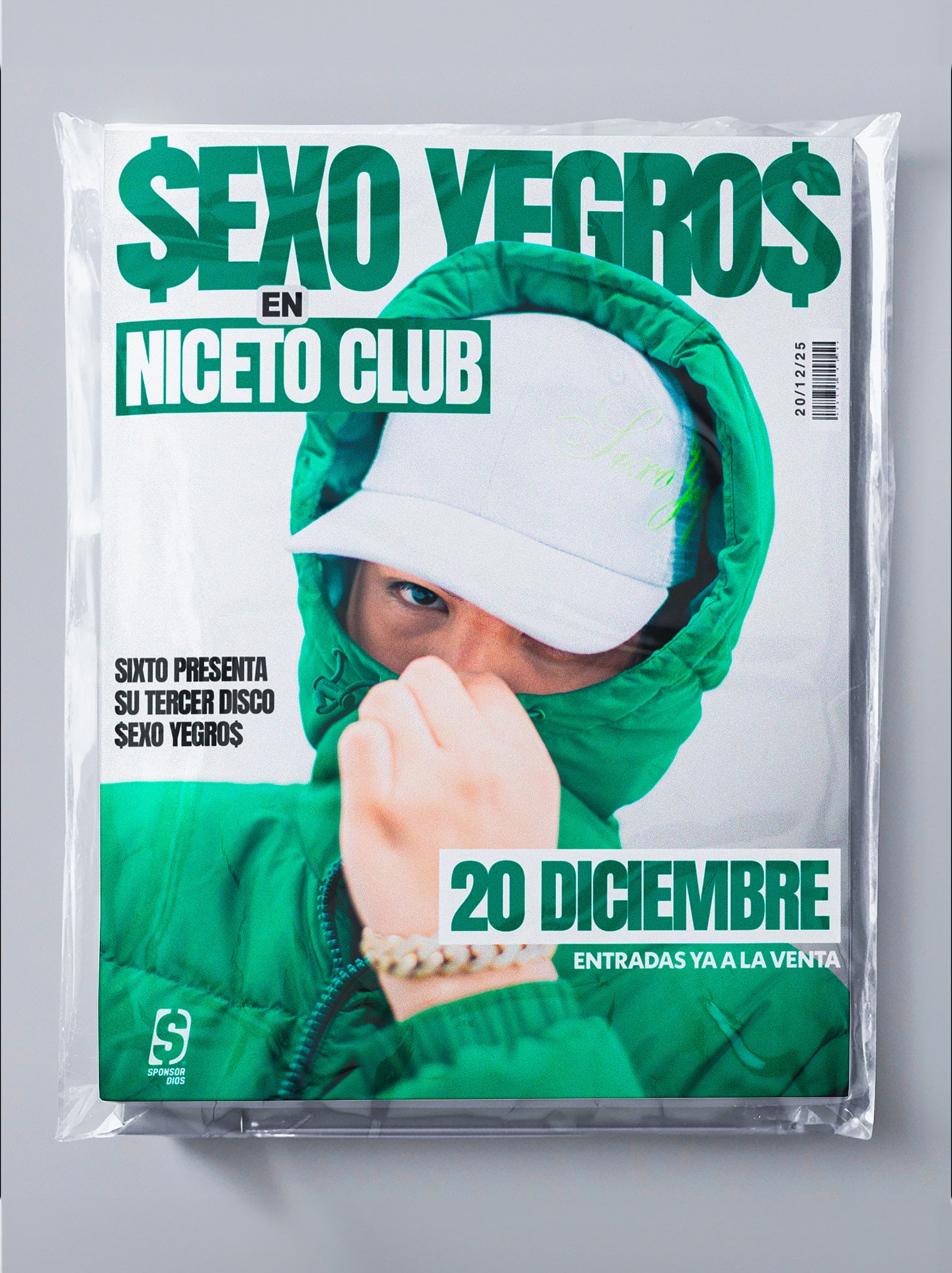SEXO YEGROS: La consolidación de una voz que no pide permiso Desde sus inicios, Sixto ha sabido construir una identidad basada en la autenticidad y la fuerza interpretativa. Pero con "SEXO YEGROS", el artista de Sponsor Dios patea el tablero y se sumerge en las profundidades de su universo personal. Este nuevo material no es solo un disco; es una declaración de principios donde el deseo, la noche y la realidad se entrelazan sobre beats oscuros y afilados. "Sentía que tenía que romper con lo anterior para renacer en esta nueva piel. Este disco es lo más honesto que hice hasta ahora, sin filtros, directo al hueso", confiesa Sixto sobre el proceso de creación. El álbum fue gestado entre viajes y sesiones nocturnas intensas, buscando capturar esa energía densa que solo se encuentra cuando se apagan las luces de la ciudad.