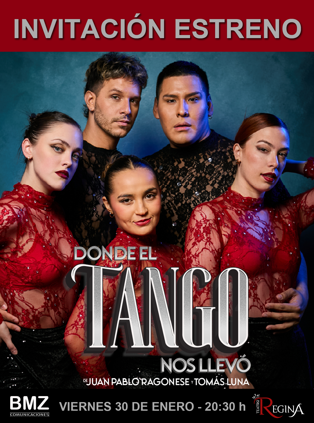 El viernes 30 de enero de 2026 en el Teatro Regina es el ESTRENO de un espectáculo que te hará vibrar y emocionar: Donde el Tango Nos Llevó, sobre una idea original de Juan Pablo Ragonese y Tomás Luna.
