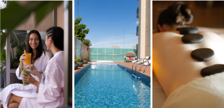 La propuesta se completa con un menú de tratamientos que combina técnicas de relajación, aromaterapia y cosmética profesional Germaine de Capuccini. Durante el verano, se ofrecen experiencias integrales como Pure Energy C+, Only for You, Harmony Day, Healthy Day, Serenity, Love & Health, Experiencia Secret y Friends Experience, pensadas para disfrutar de manera individual, en pareja o con amigas. Todas las experiencias incluyen acceso al circuito de bienestar, estacionamiento y servicios exclusivos del hotel.