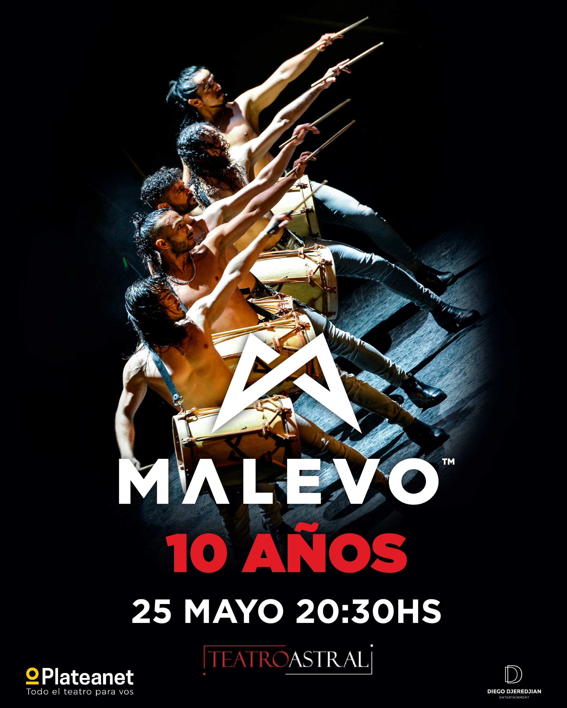 La reconocida agrupación MALEVO hace una pausa en su recorrido por los escenarios del mundo para celebrar su primera década de historia en el país. Creada por el director, coreógrafo y bailarín Matías Jaime, la compañía agrega una nueva función debido al éxito de la temporada 2026: 25 de mayo a las 20:30 hs en el emblemático Teatro Astral de la Ciudad de Buenos Aires. MALEVO ha logrado llevar el Malambo, la danza folclórica tradicional argentina, más allá de sus límites convencionales. Con un enfoque moderno, vanguardista y transgresor, la propuesta fusiona la destreza y virilidad del zapateo con otros estilos como el flamenco y la percusión urbana, creando un lenguaje visual y sonoro que ha cautivado a audiencias globales. Un recorrido de prestigio mundialNombrados "Embajadores Culturales de la Identidad Nacional Argentina", los integrantes de MALEVO regresan al país precedidos por una trayectoria que incluye hitos en las principales capitales del mundo: - Presentaciones en ciudades como Las Vegas, Nueva York, Dubái, París, El Cairo, San Petersburgo y Montreal.